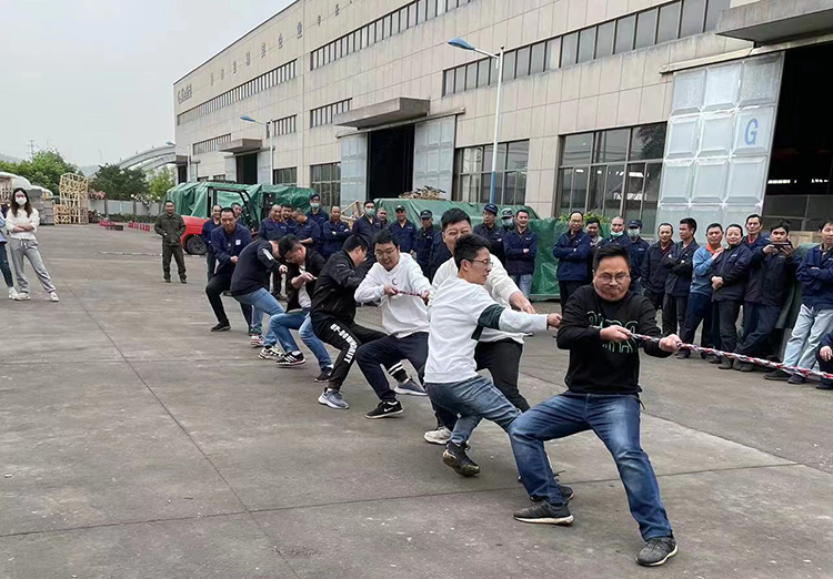 比賽以各部門為單位,每?jī)蓚€(gè)小組之間進(jìn)行淘汰賽。當(dāng)比賽開始的哨聲響起,大家全都緊握繩子,憋足了勁把繩子往后拉。比賽過(guò)程中,各部門參賽隊(duì)員努力拼搏,無(wú)論是場(chǎng)上還是場(chǎng)下,氣氛都異常緊張,富有節(jié)奏感的“一二拉,一二拉”,還有加油聲,充斥在操場(chǎng)上空。尤其是在勝負(fù)難分的時(shí)刻,大家毫不退卻,咬緊牙關(guān),堅(jiān)持到底。