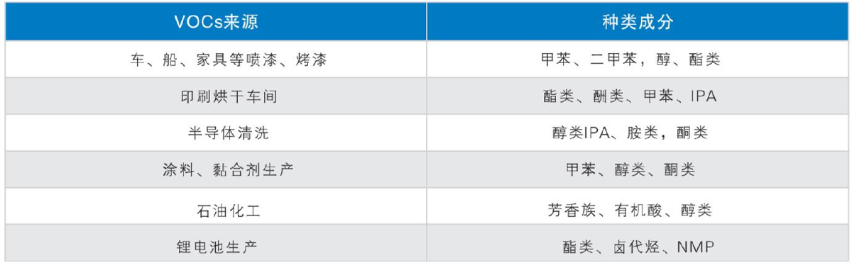 應(yīng)用行業(yè)及廢氣成分: